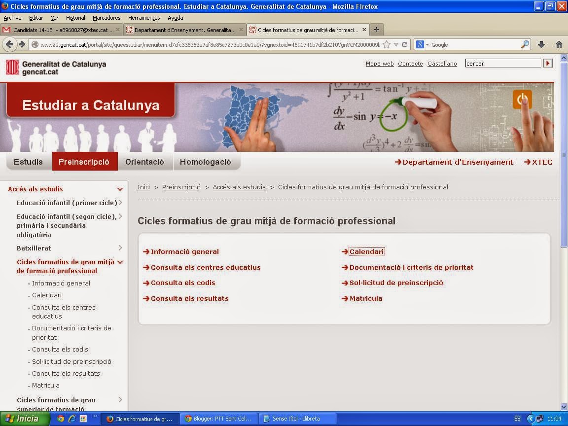 Calendari preinscripció i matrícula a cicles formatius de grau mitjà